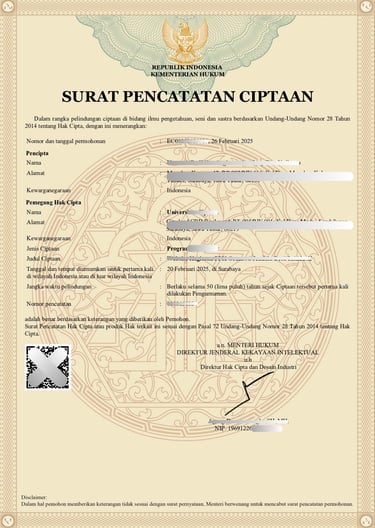3️⃣ Sertifikat Resmi – Setelah disetujui, Anda akan mendapatkan sertifikat hak cipta digital dengan barcode resmi.